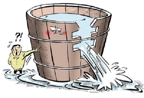 木桶定律是講一只水桶能裝多少水,這完全取決于它最短的那塊木板。這就是說任何一個組織,可能面臨的一個共同問題,即構(gòu)成組織的各個部分往往是優(yōu)劣不齊的,而劣勢部分往往決定整個組織的水平。水桶定律與酒與污水定律不同,后者討論的是組織中的破壞力量,最短的木板卻是組織中有用的一個部分,只不過比其他部分差一些,你不能把它們當(dāng)成糟糕的而扔掉。強(qiáng)弱只是相對而言的,無法消除,問題在于你容忍這種弱點(diǎn)到什么程度,如果嚴(yán)重到成為阻礙工作的瓶頸,你就不得不有所動作。