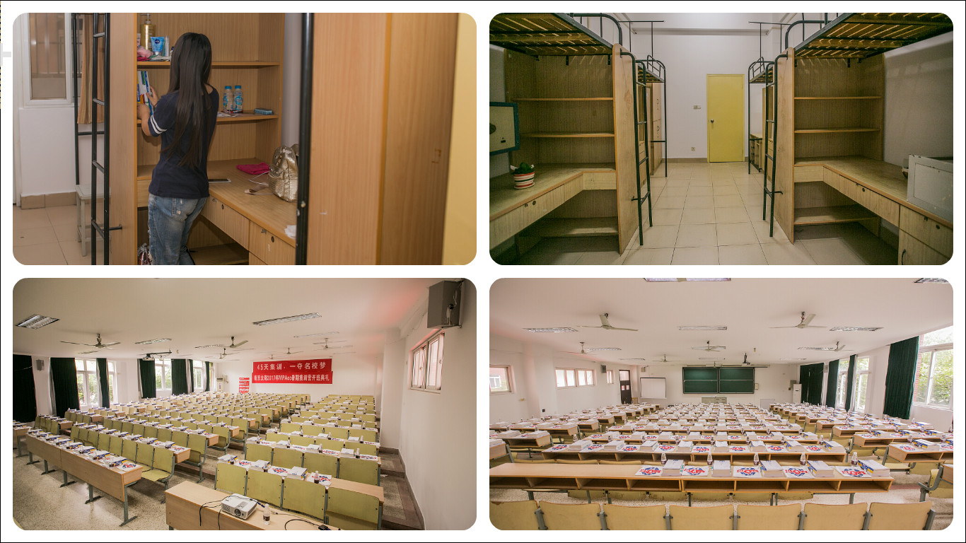 據(jù)了解,為了迎接全國各地的太奇學(xué)員前來備戰(zhàn),私陪集訓(xùn)營還精心準(zhǔn)備了集訓(xùn)營的硬件設(shè)備,開營選址在環(huán)境優(yōu)美學(xué)習(xí)氣氛濃厚的大學(xué)城區(qū),緊張的環(huán)境更能讓考生為目標(biāo)努力奮斗,靜心備考,授課水平及住宿環(huán)境全部延續(xù)采取高質(zhì)量的住宿標(biāo)準(zhǔn),并配備全職班主任進(jìn)行全天候管理,秉承學(xué)在于精、食在于細(xì)、住在于微、行在于正的原則,無微不至的給予備考考生全面的生活照料,使考生能心無旁騖,一心向?qū)W。我們的宿舍教室那個顏值也是相當(dāng)?shù)母甙?
