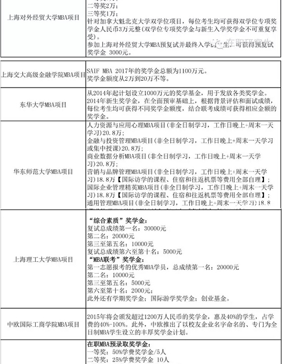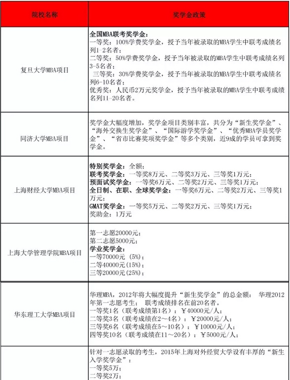 上海地區(qū)各大MBA院校獎學(xué)金政策匯總