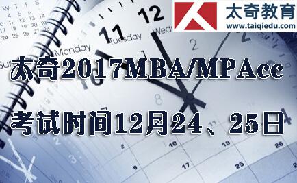 太奇2017MBA/MPAcc考試時間12月24、25日