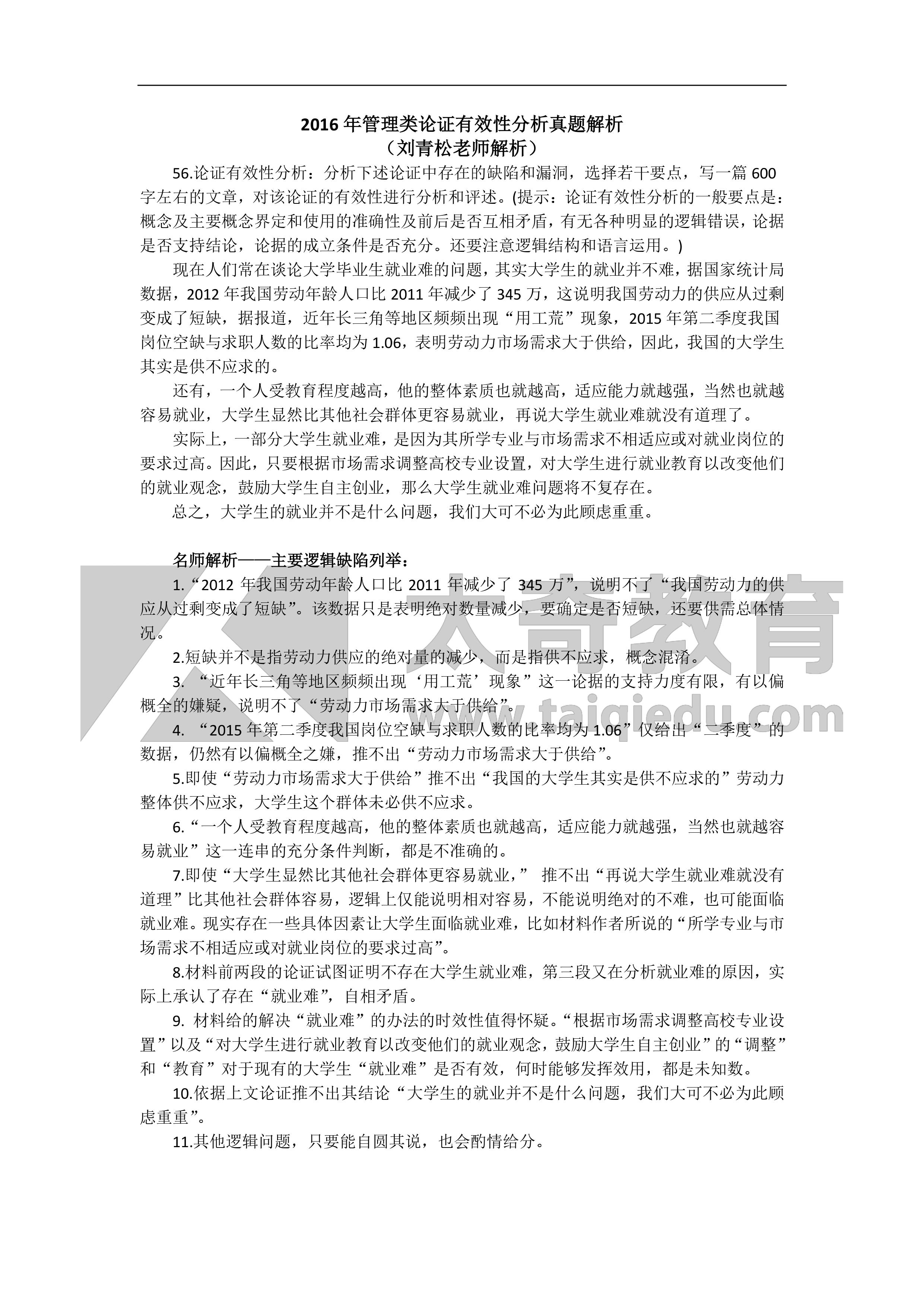 2016MBA管理類(lèi)聯(lián)考寫(xiě)作真題解析:論證有效性分析