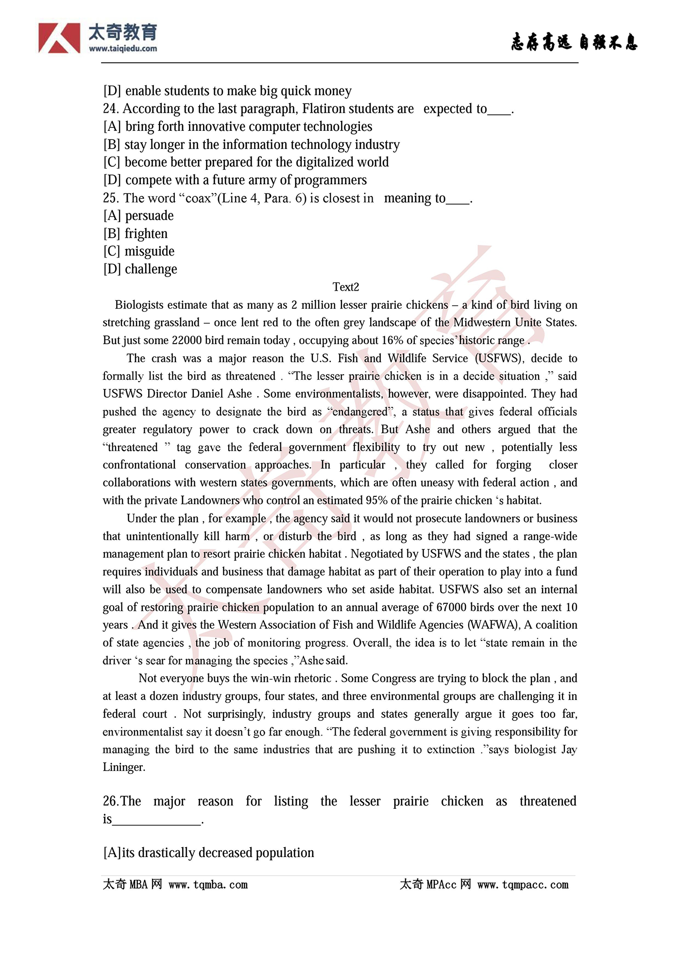 2016MBA管理類聯(lián)考英語(二)真題完整版(4)