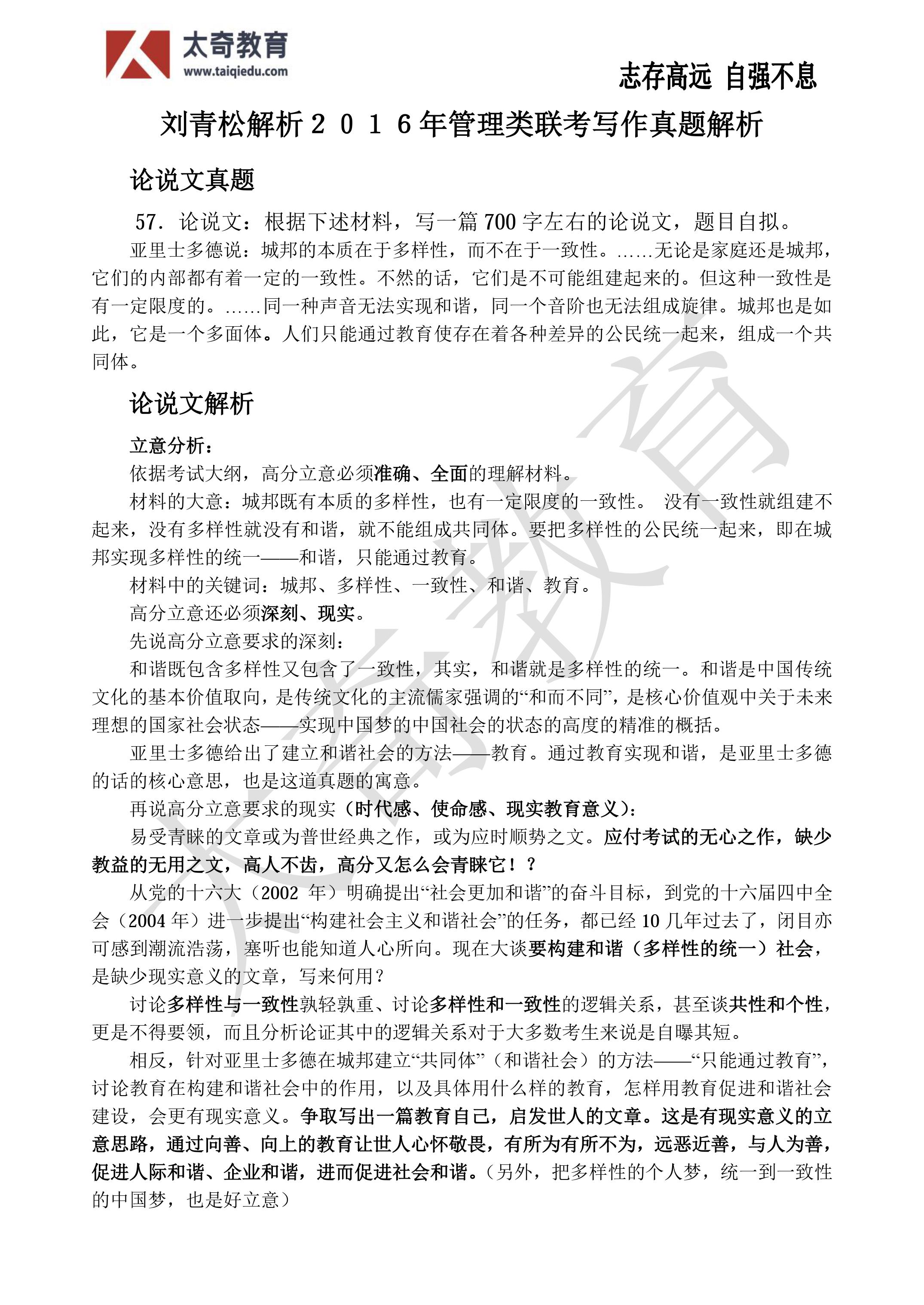 劉青松老師獨(dú)家提供2016管理類聯(lián)考寫作參考范文