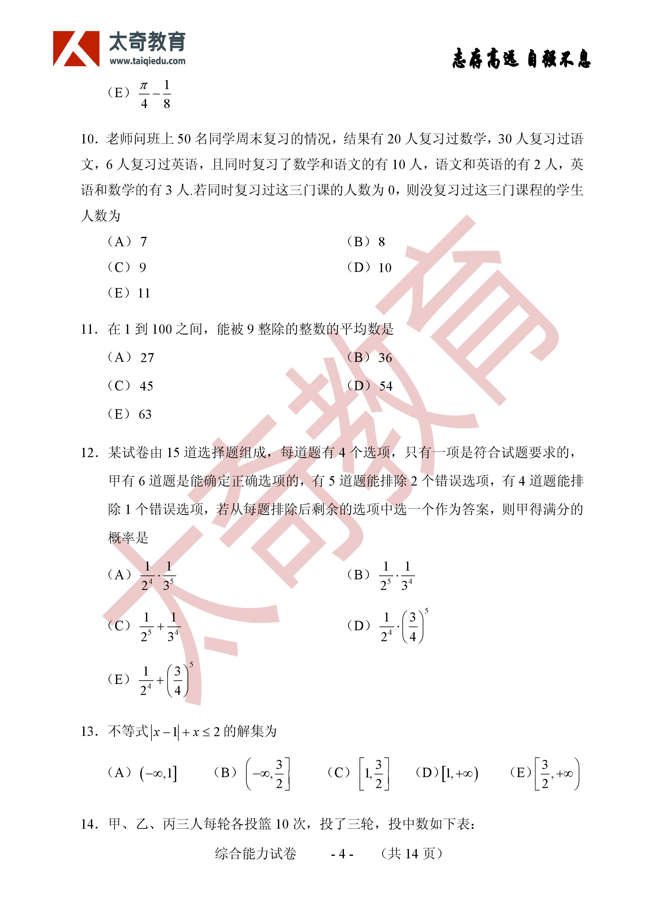 2017年MBA聯(lián)考數(shù)學(xué)真題參考答案:問(wèn)題求解(3)