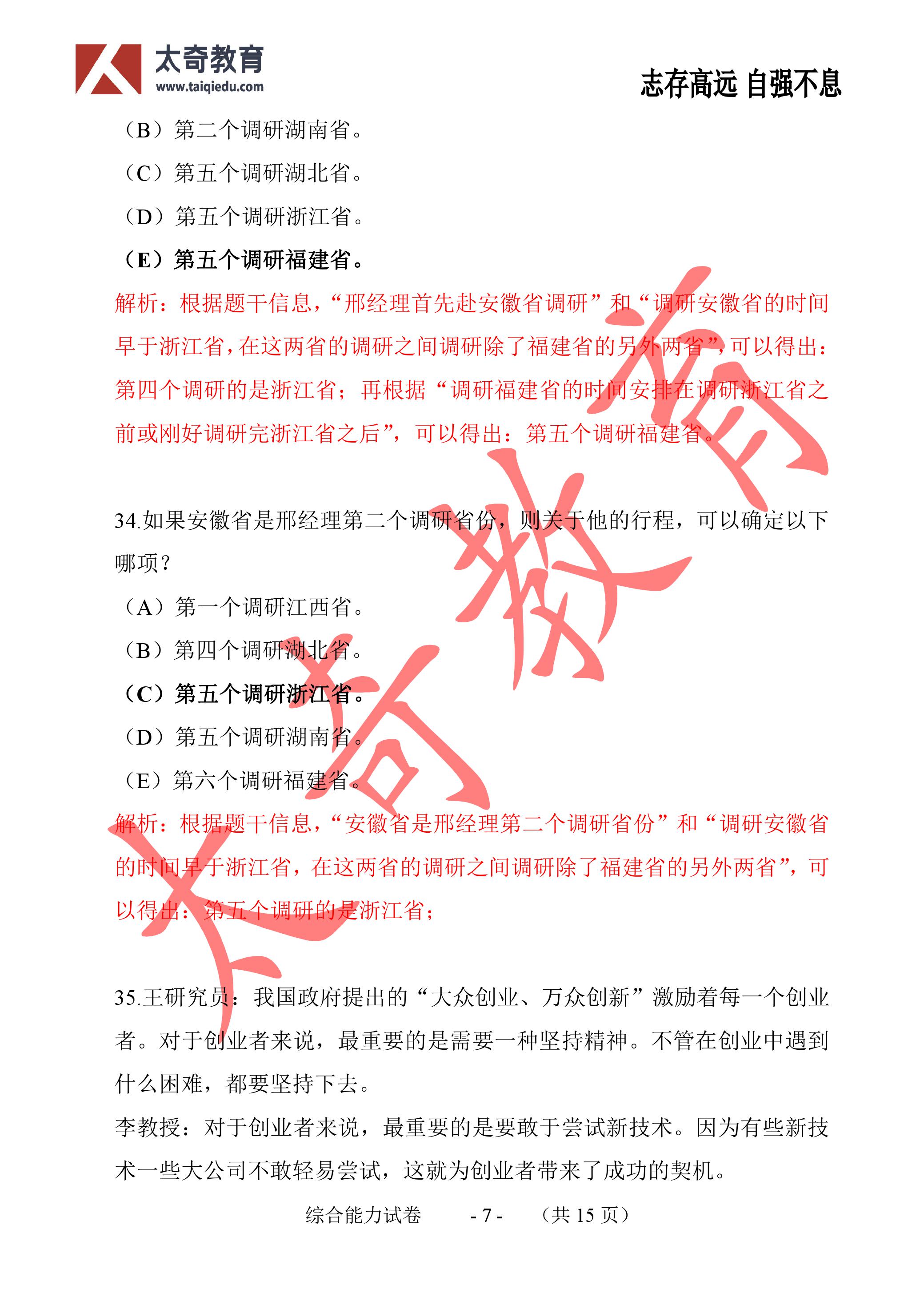 2017年MBA聯(lián)考數(shù)學(xué)真題參考答案:問題求解