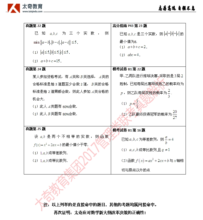 祝賀太奇教育2017管理類聯(lián)考數(shù)學直接命中66分(7)