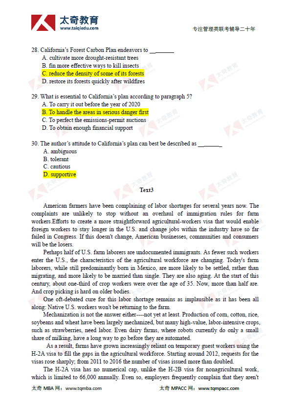 2019年管理類聯(lián)考MBA英語二真題及參考答案(5)