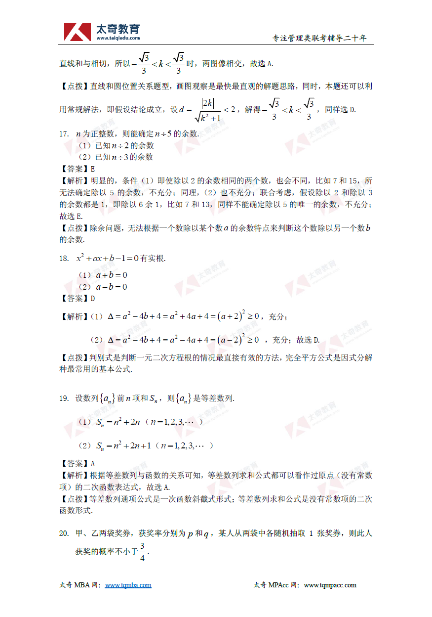 2019年管理類聯(lián)考數(shù)學(xué)真題+解析(太奇官方版)(7)