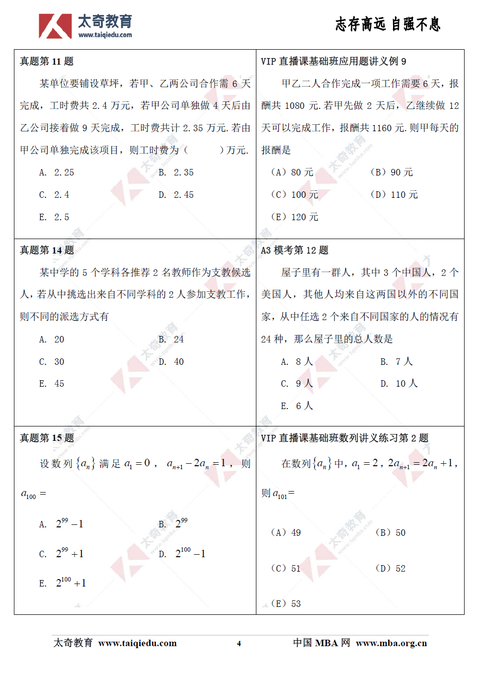 喜賀太奇2019年管理類聯(lián)考數(shù)學(xué)真題直接命中57分
