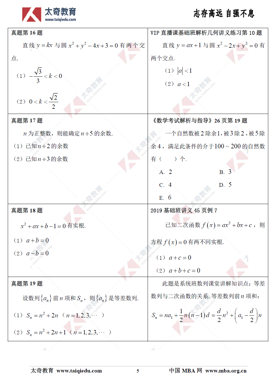 在2019年管理類聯(lián)考中,綜合數(shù)學(xué)考試部分直接命中57分,其他考題均屬間接命中,附《太奇2019年管理類聯(lián)考數(shù)學(xué)真題命中對(duì)照》!再次證明:太奇應(yīng)對(duì)數(shù)學(xué)新大綱改革決策的正確性!比命中考題更為重要的是:太奇在對(duì)每次??嫉闹R(shí)點(diǎn)、考點(diǎn),尤其在對(duì)命題方向的把握上極其精準(zhǔn)。