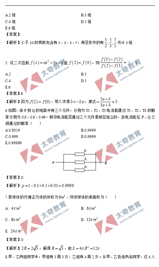 2021年MBA管理類聯(lián)考數(shù)學(xué)真題答案及解析(2)