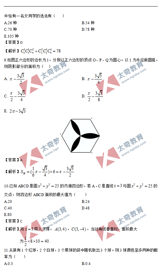 2021年MBA管理類聯(lián)考數(shù)學真題答案及解析(3)
