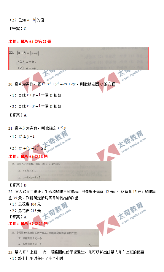 太奇2021年MBA管理類聯(lián)考數(shù)學(xué)真題命中對(duì)照(8)