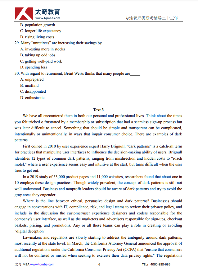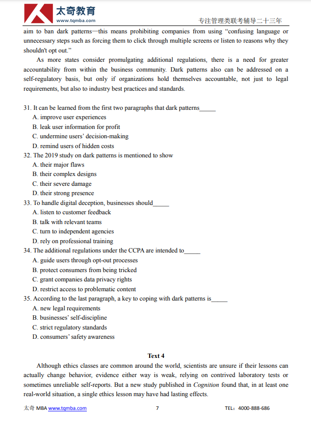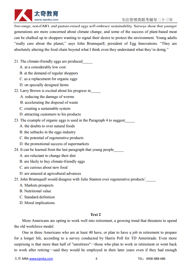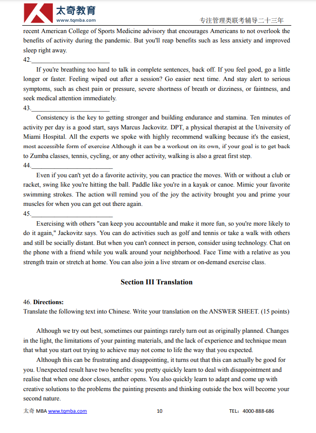 太奇2021管理類聯(lián)考真題命中對照匯總
