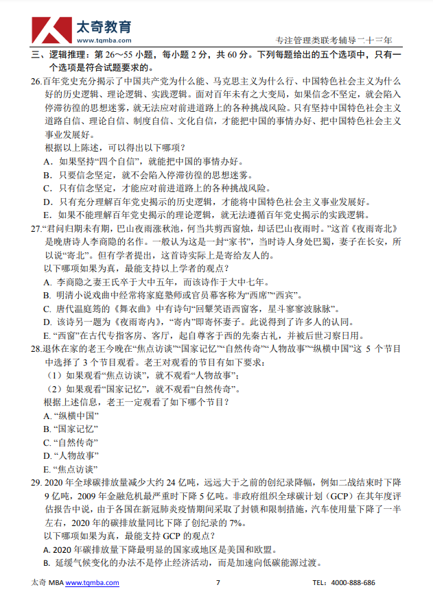 今天太奇小編為大家整理了2022年綜合管理考試真題,考試答案在文章最后,祝大家今年考試順利,考上自己心儀的院校。