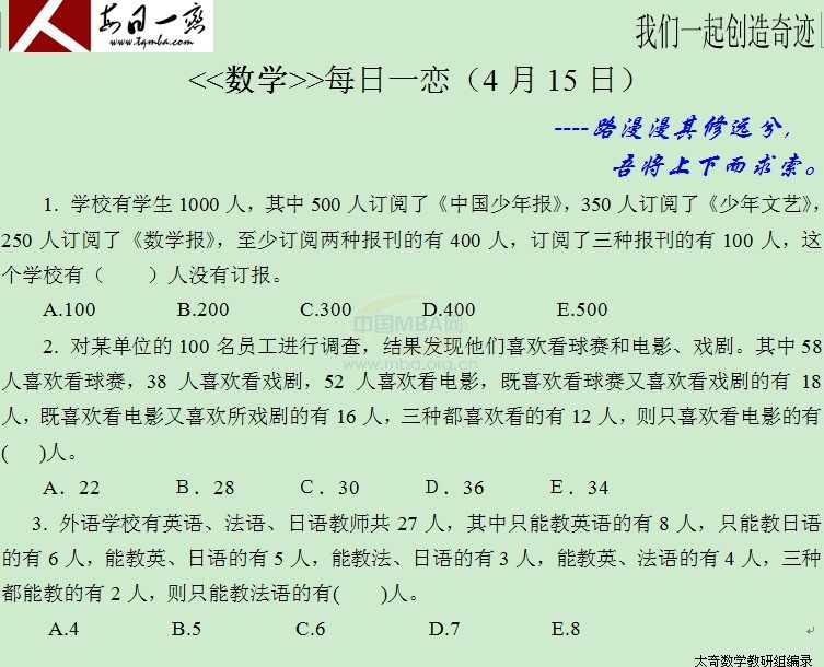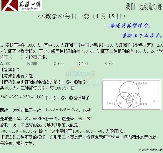 【太奇MBA 2014年4月15日】 MBA數(shù)學每日一練