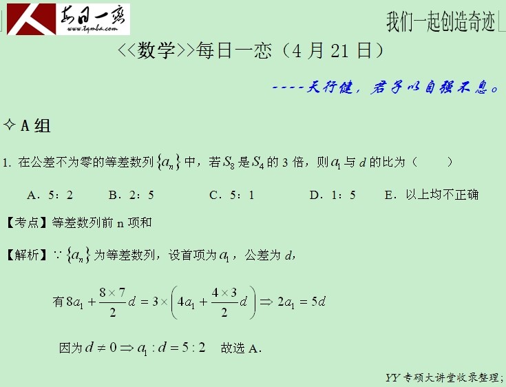 【太奇MBA 2014年4月21日】 MBA數(shù)學(xué)每日一練