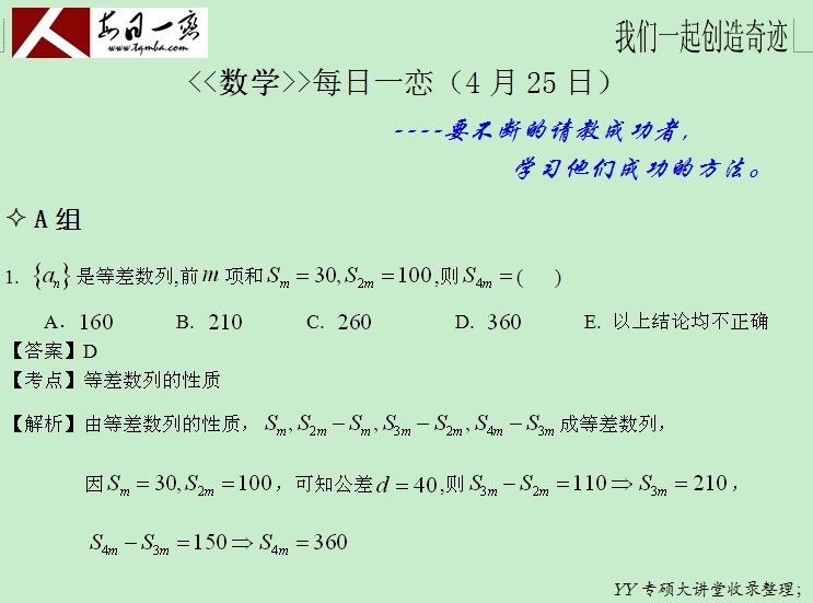 【太奇MBA 2014年4月25日】 MBA數(shù)學(xué)每日一練