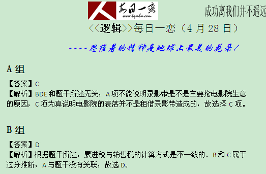 【太奇MBA 2014年4月28日】 MBA邏輯每日一練