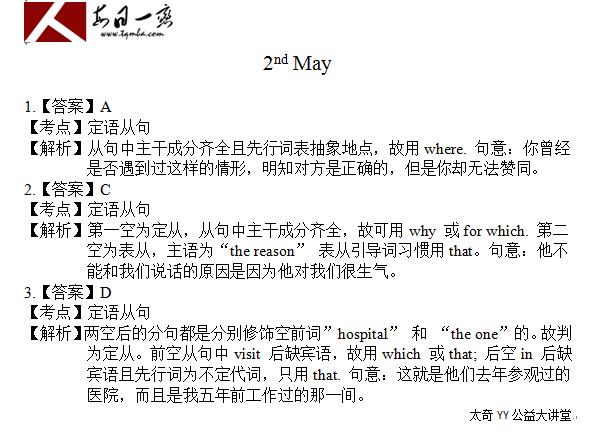 【太奇MBA 2014年5月2日】 MBA數(shù)學(xué)每日一練