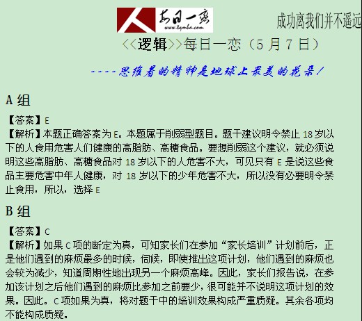 【太奇MBA 2014年5月7日】 MBA邏輯每日一練