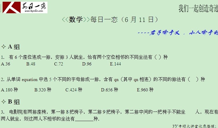 【太奇MBA 2014年6月10日】 MBA數(shù)學(xué)每日一練