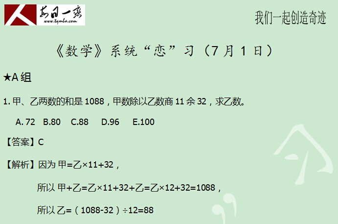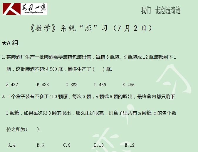 【太奇MBA 2014年7月2日】 MBA數(shù)學每日一練