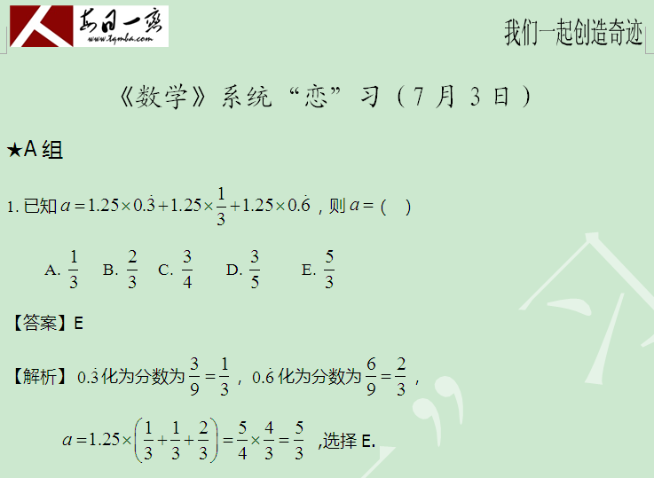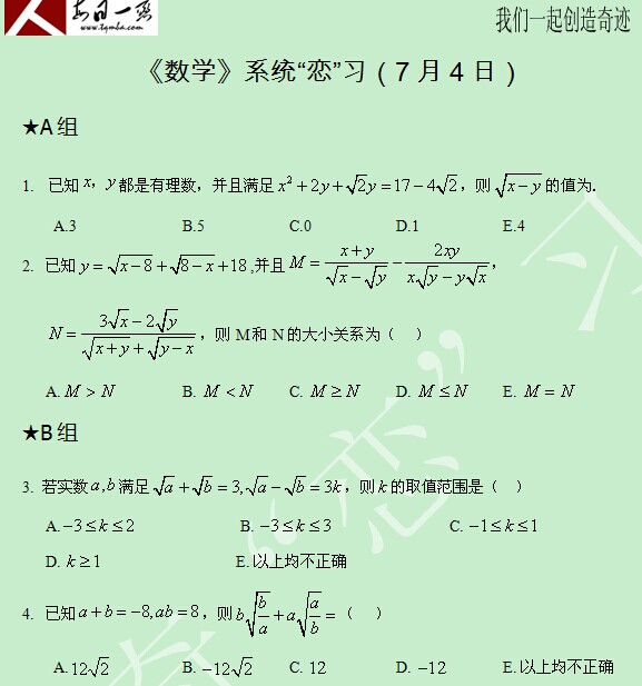 【太奇MBA 2014年7月4日】 MBA數(shù)學每日一練