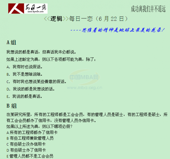 【太奇MBA 2015年6月22日】MBA英語(yǔ)每日一練