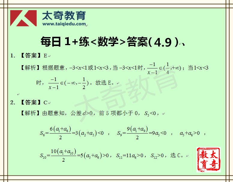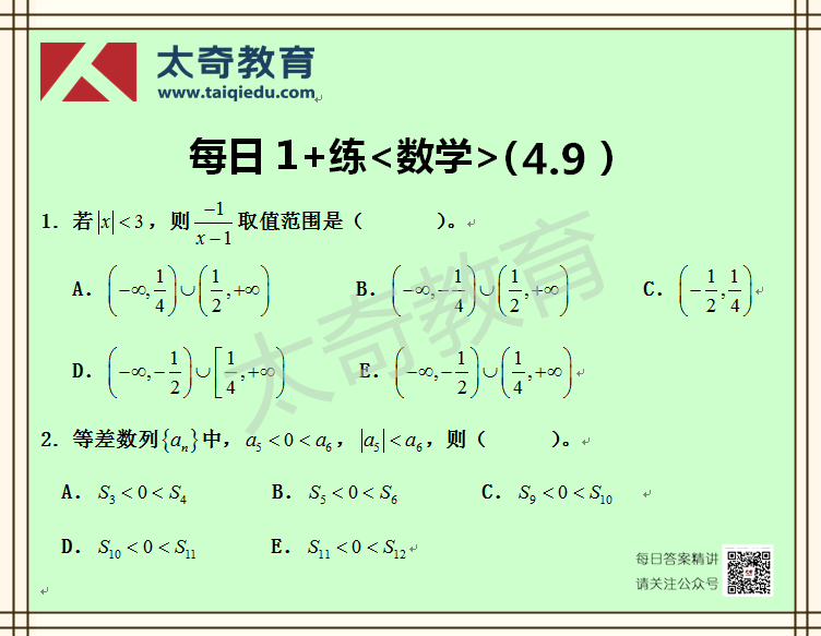 太奇MBA管理類聯(lián)考數(shù)學(xué)每日一練 4-9