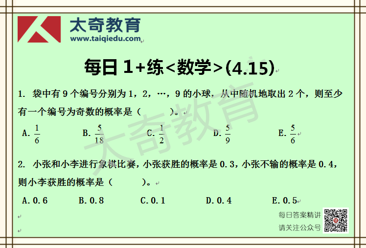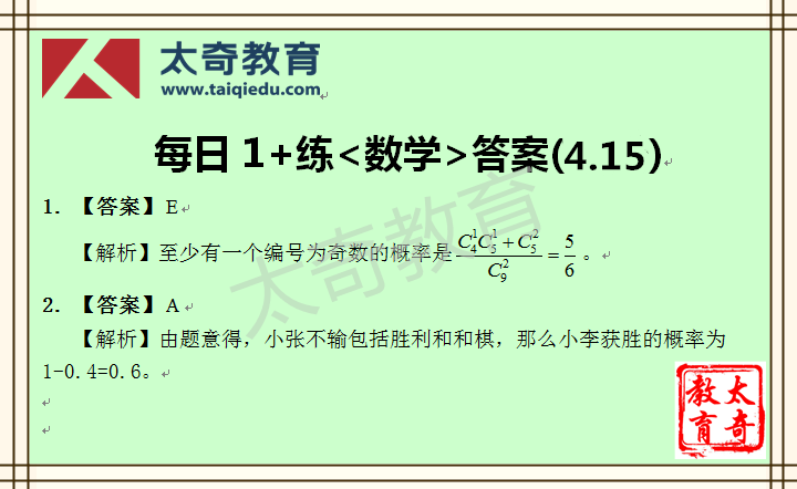 太奇MBA管理類聯(lián)考數(shù)學每日一練 4-15