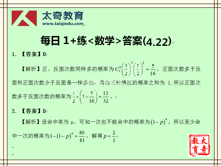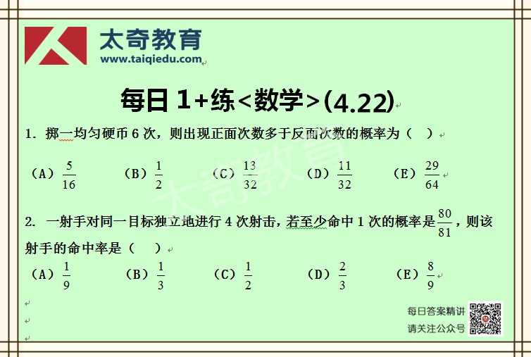 太奇MBA管理類聯(lián)考數(shù)學(xué)每日一練 4-22
