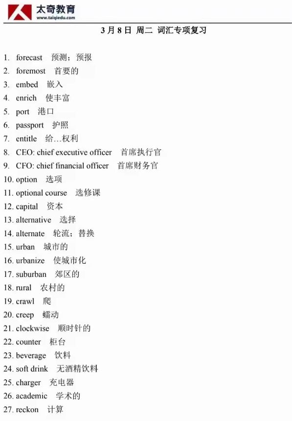 3月8日詞匯專(zhuān)項(xiàng)練習(xí)