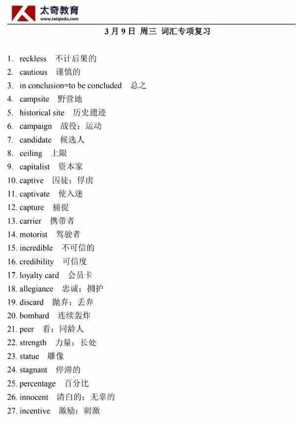 3月9日詞匯專項(xiàng)練習(xí)