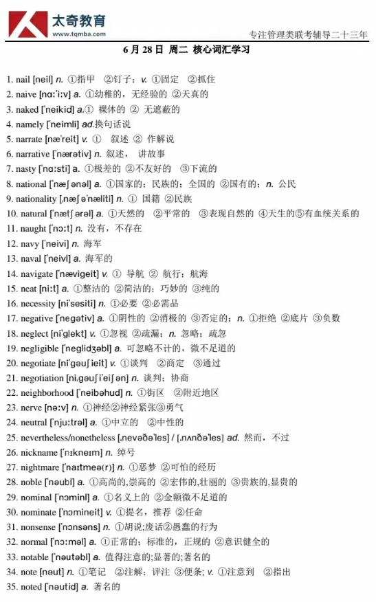 6月28日詞匯專項練習(xí)