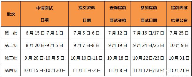 提前面試內容包括背景評估、小組面試、個人綜合面試、個人英語面試等。