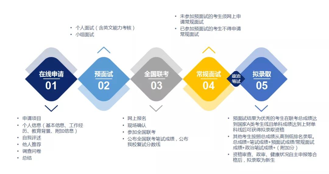 上海財(cái)經(jīng)大學(xué)MBA招生采取“W+D預(yù)面試”政策。申請(qǐng)人在參加聯(lián)考之前提前參加面試,我院根據(jù)考生在線申請(qǐng)所提交的報(bào)名信息進(jìn)行全面的背景評(píng)估(Width),并根據(jù)背景評(píng)估結(jié)果,對(duì)符合條件的考生進(jìn)行較為深入的預(yù)面試考察(Depth)。