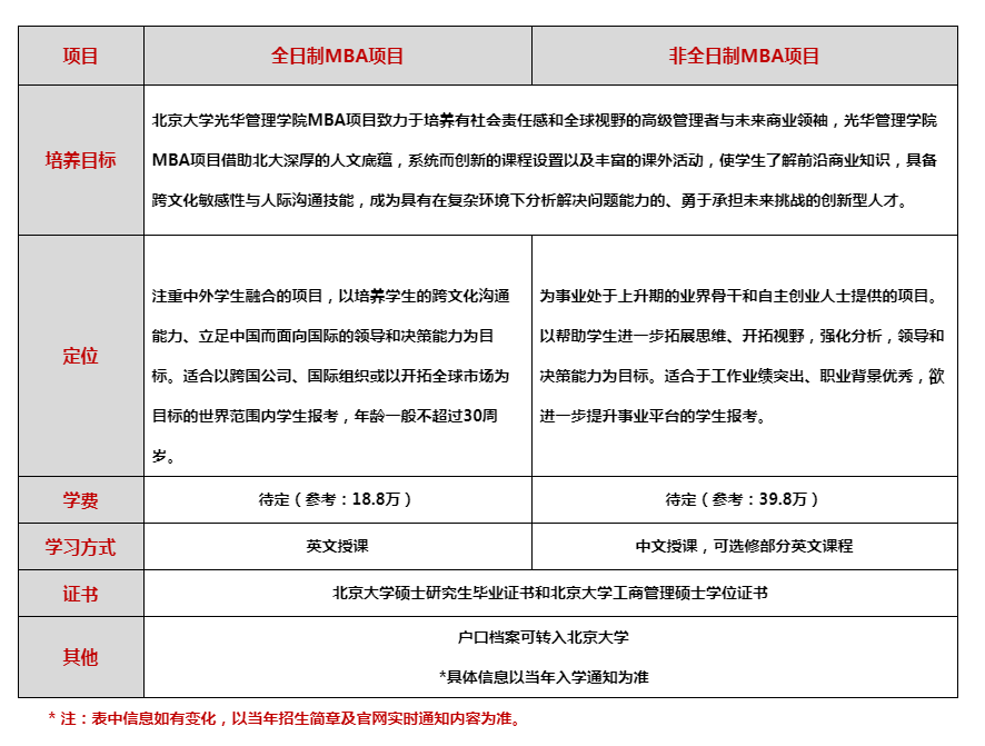 北京大學光華管理學院MBA2020年招生包含全日制MBA和非全日制MBA項目。