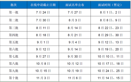 提前面試政策第一版日程安排