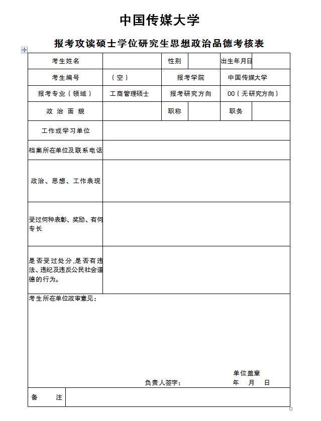 報(bào)考攻讀碩士學(xué)位研究生思想政治品德考核表
