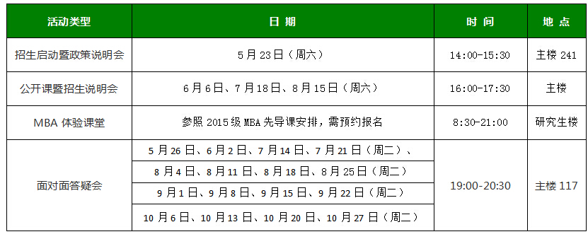 復(fù)試時(shí)間:2016年3月中旬,3月下旬出復(fù)試結(jié)果(具體時(shí)間以我校MBA中心通知為準(zhǔn))