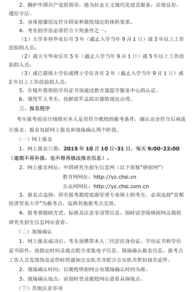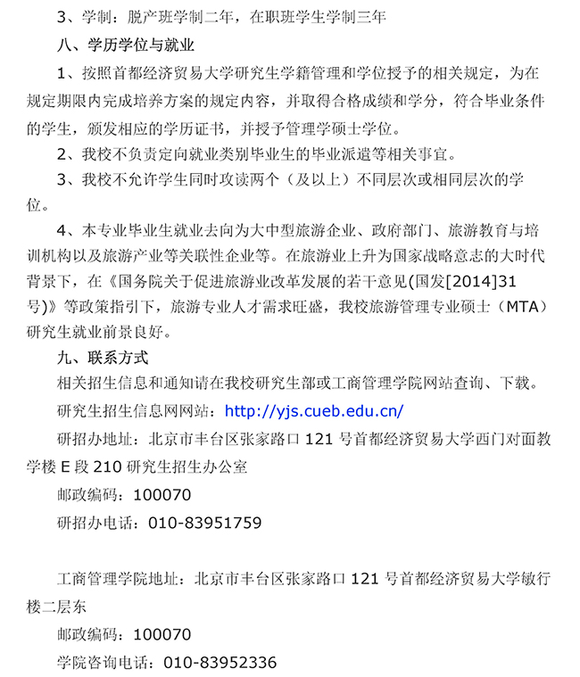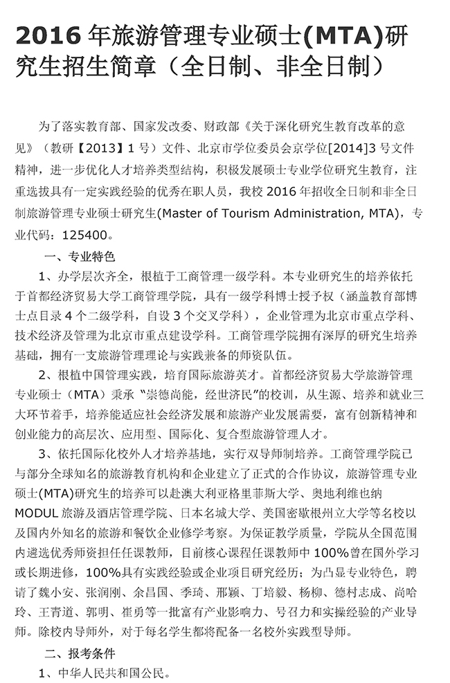 首都經(jīng)濟(jì)貿(mào)易大學(xué)旅游管理碩士(MTA)招生簡章