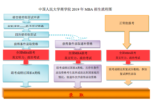 登錄中國(guó)人民大學(xué)商學(xué)院MBA項(xiàng)目中心網(wǎng)站“考生服務(wù)系統(tǒng)”,按照規(guī)定時(shí)間提交網(wǎng)上申請(qǐng)材料,學(xué)院將組織專家評(píng)審申請(qǐng)材料,擇優(yōu)給予提前面試資格并組織面試。面試后獲得條件錄取資格和條件錄取遞補(bǔ)資格的考生需參加2018年12月底舉行的全國(guó)聯(lián)考。