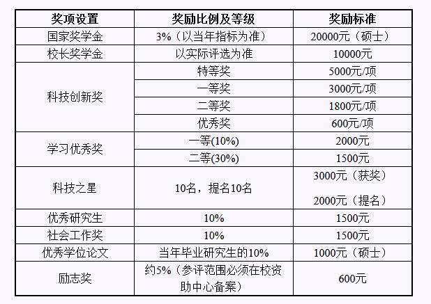 研究生學(xué)業(yè)獎學(xué)金對象為符合條件的學(xué)校各類在讀研究生。獎勵類別包括研究生國家獎學(xué)金、校長獎學(xué)金、科技創(chuàng)新獎、研究生學(xué)習(xí)優(yōu)秀獎、科技之星、優(yōu)秀研究生獎、社會工作獎、研究生優(yōu)秀學(xué)位論文獎、勵志獎等。