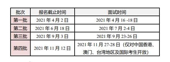 資料齊全且通過審核后,學(xué)院將以電子郵件的方式給予反饋,在各批次報(bào)名截止時(shí)間后按照相應(yīng)批次的面試時(shí)間統(tǒng)一安排面試??忌殧y帶考試通知上所要求的材料參加面試。面試時(shí)須攜帶所有資料原件進(jìn)行資格審查。通過面試者將獲得條件錄取資格。