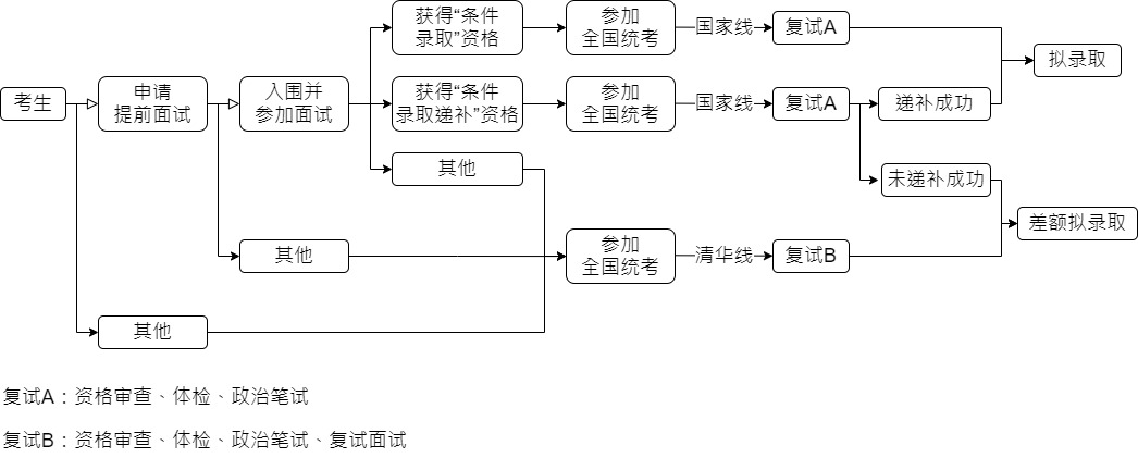 考生可通過參加提前面試走提前面試批,或直接參加聯(lián)考走普通批進(jìn)行報(bào)考,具體流程見下圖: