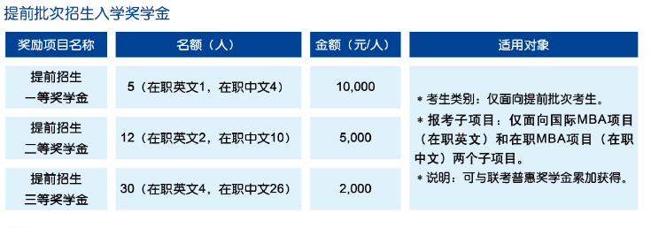 “MBA提前批次招生”將安排于2018年5月至11月底結(jié)束。對于準(zhǔn)備報(bào)考各個項(xiàng)目的考生,我們將從全部招生名額中安排較多比例的名額提供給提前批次招生批次的考生,以使優(yōu)秀的考生能選擇更優(yōu)先的渠道獲得錄取的機(jī)會。