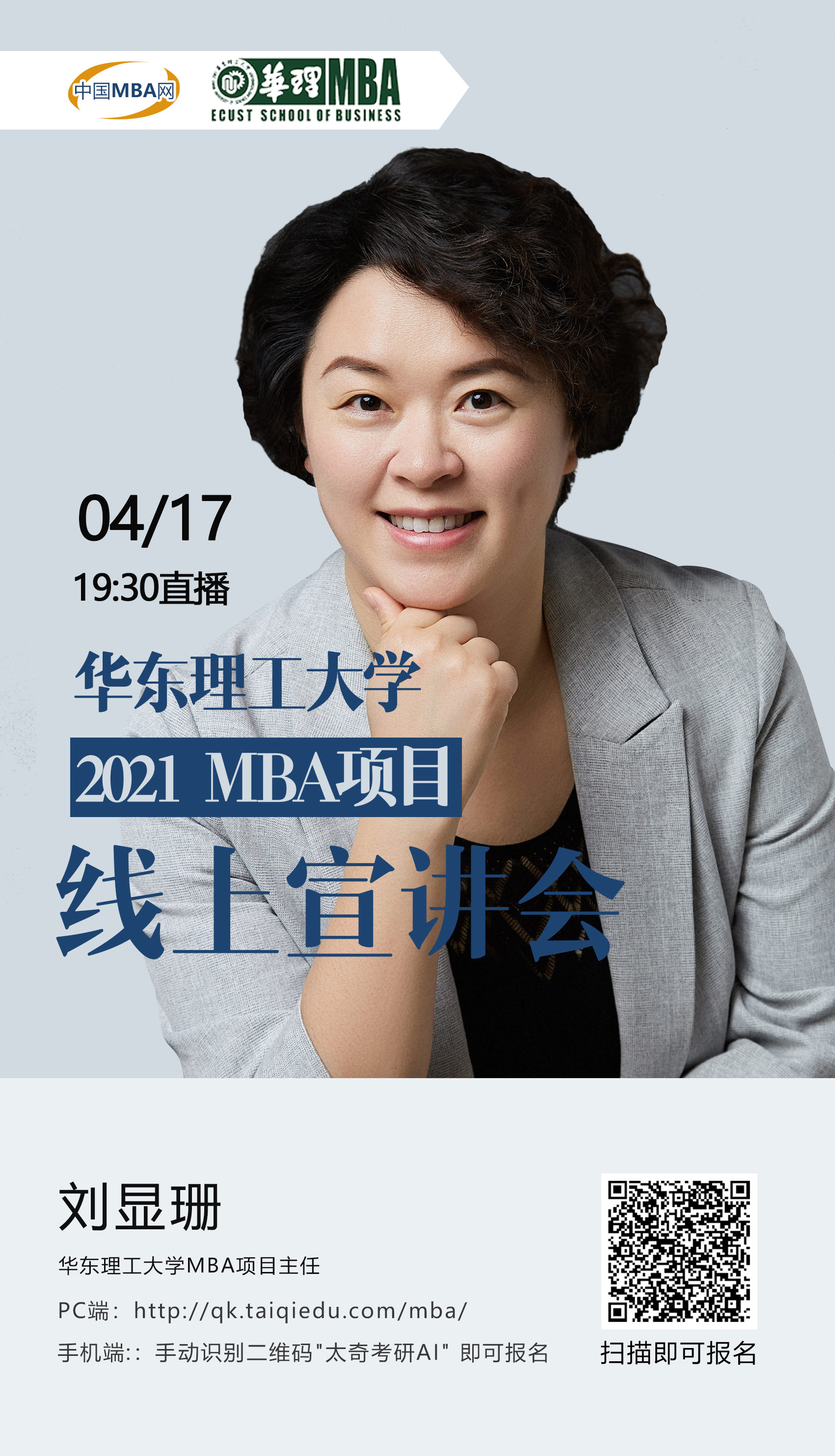 為了讓2021級考生能夠及時的了解我校,2021年的招生政策及動態(tài),華東理工大學MBA項目應(yīng)中國MBA網(wǎng)的邀請出席“2021全國商學院MBA/EMBA/MEM教育巡展暨招生政策發(fā)布會”!