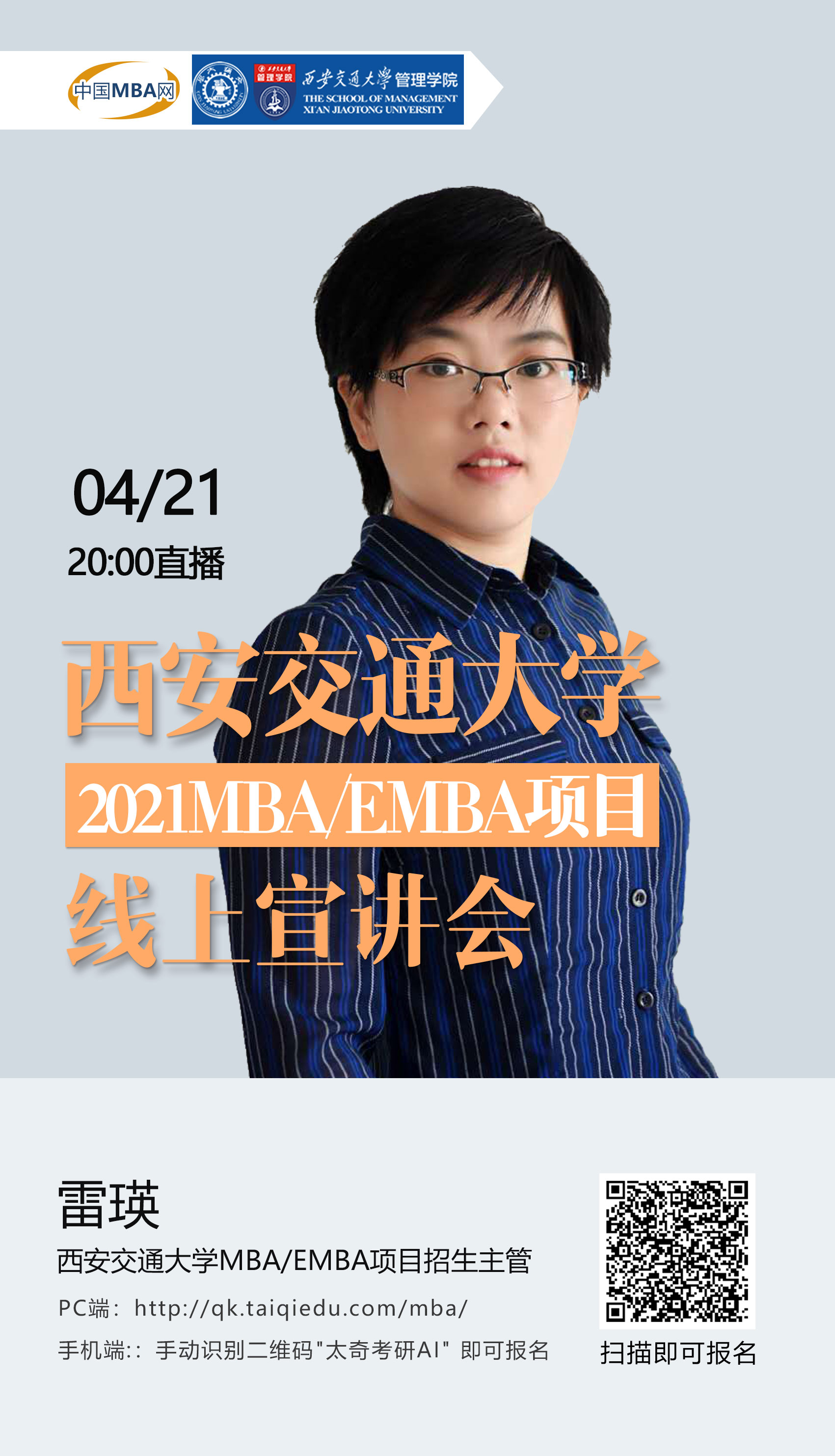 4月21日|21:10西安交通大學(xué)MBA招生政策發(fā)布會(huì)(直播)