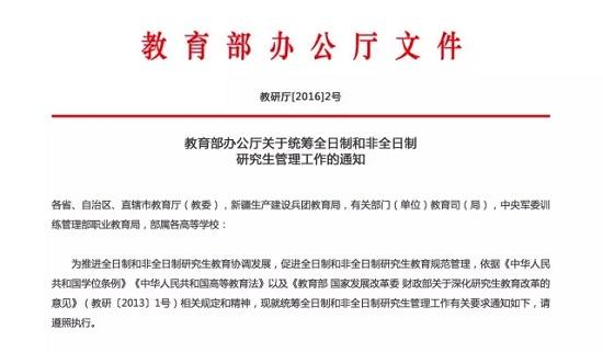 商院圈子中今年幾個新規(guī)的出臺掀起大波。2016年9月14日,我國教育部辦公廳印發(fā)了《關于統(tǒng)籌全日制和非全日制研究生管理工作的通知》(教研廳[2016]2號),對統(tǒng)籌全日制和非全日制研究生管理工作做出了明確要求?!锻ㄖ窌BA教育產(chǎn)生什么影響呢?到底這些教育部新規(guī),與考生有什么直接的關系?是否會影響到考生的選擇呢?太奇帶大家看看教育新規(guī)。